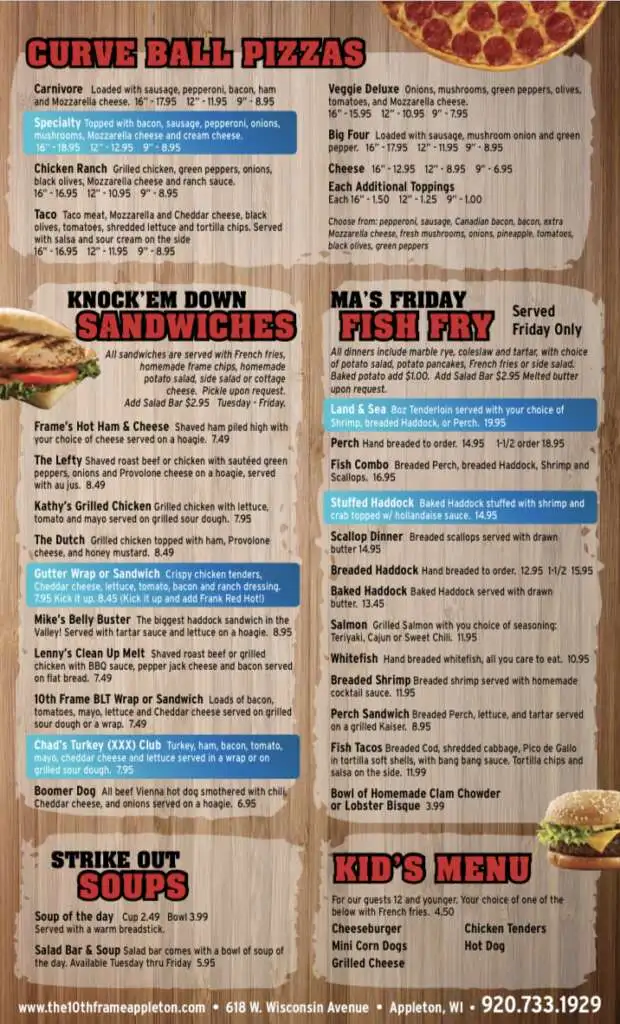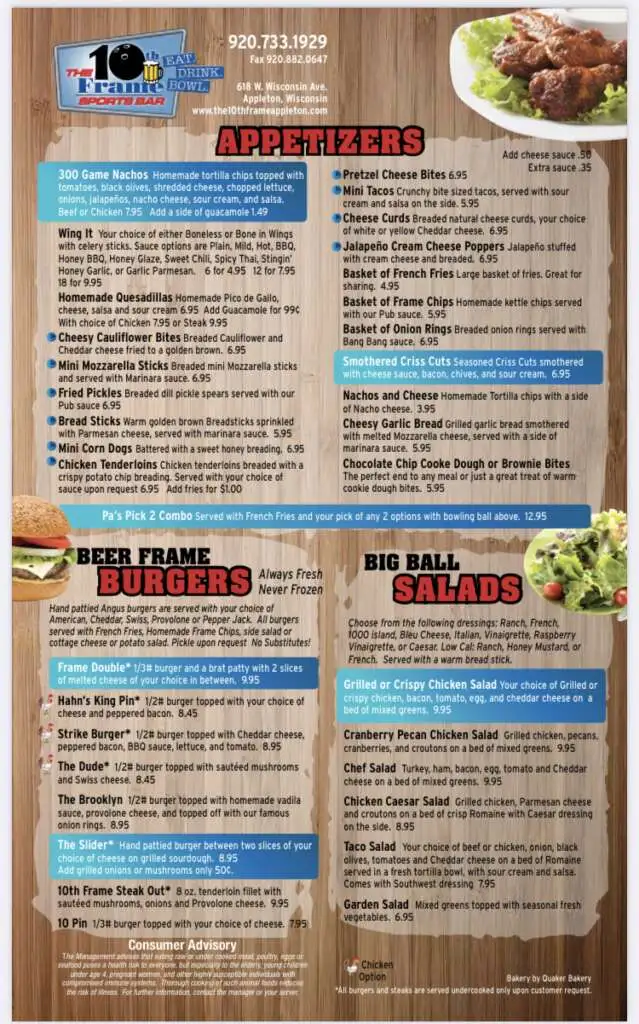 In 2004 they expanded The 10th Frame’s offerings and opened a full menu kitchen. They have a very large menu with anything from homemade hand patty burgers to wraps to pizza and to what some say is the best fish you can get in the Valley.