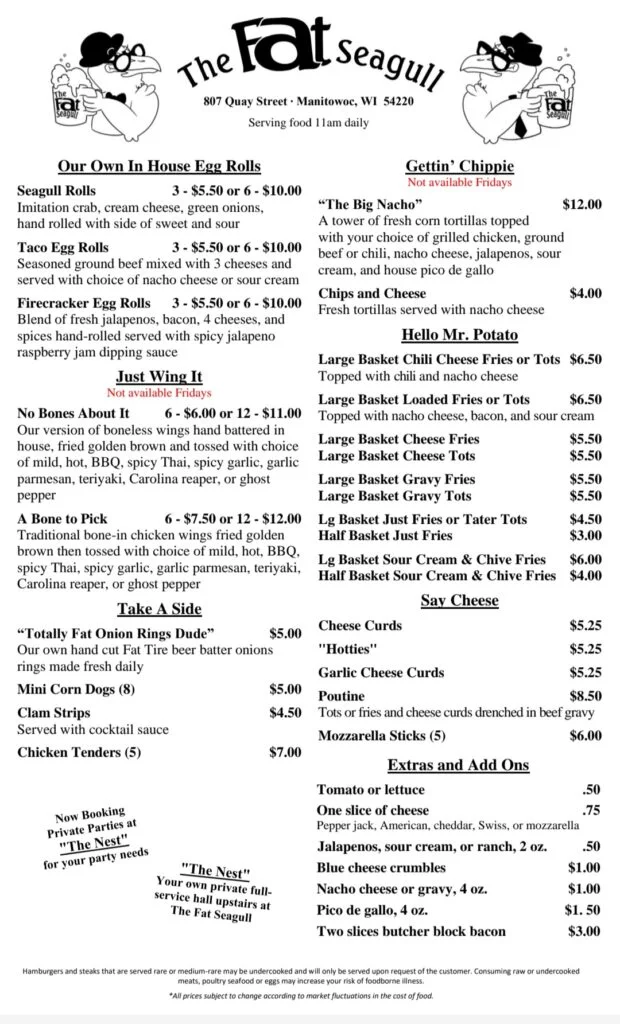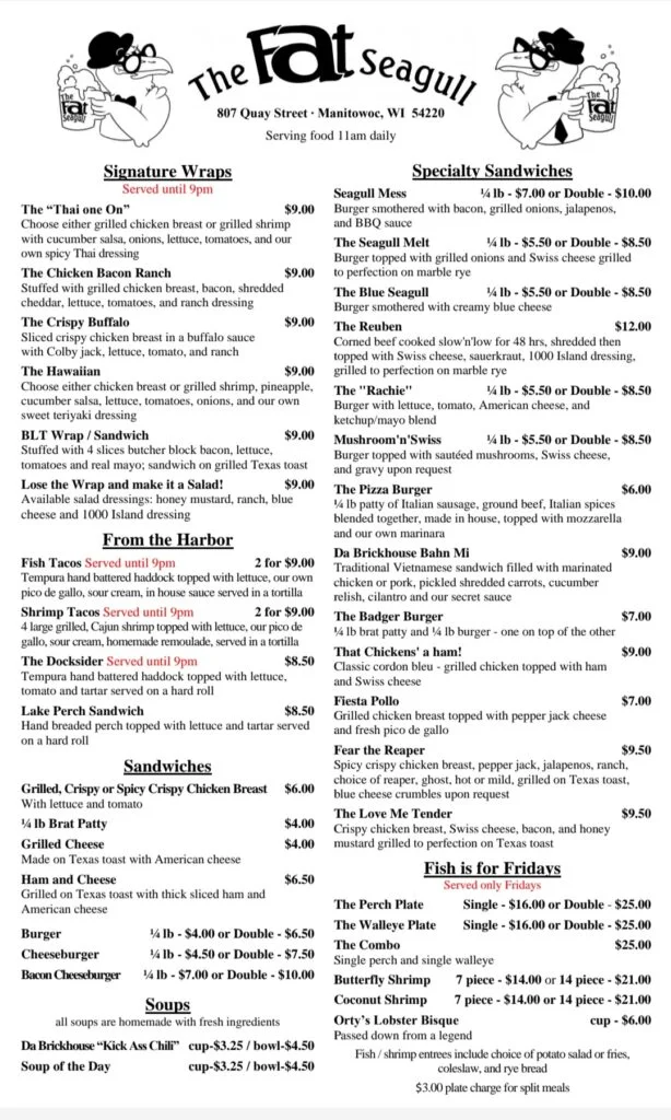 Looking for a cozy and welcoming atmosphere for your next casual dining experience? Look no further than The Fat Seagull. With its inviting ambiance, this restaurant is the perfect food destination in Manitowoc.