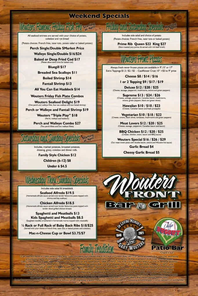 Wouters Front is more than an establishment; it’s a testament to a family’s passion for sports, community, and the tavern tradition. With a legacy spanning decades, the Wouters name has become a cherished part of Green Bay’s story. So come, be a part of the family, and experience the warmth and camaraderie that define Wouters Front. Join us for great food, refreshing drinks, and a celebration of sportsmanship – because, at Wouters, everyone’s a champion.