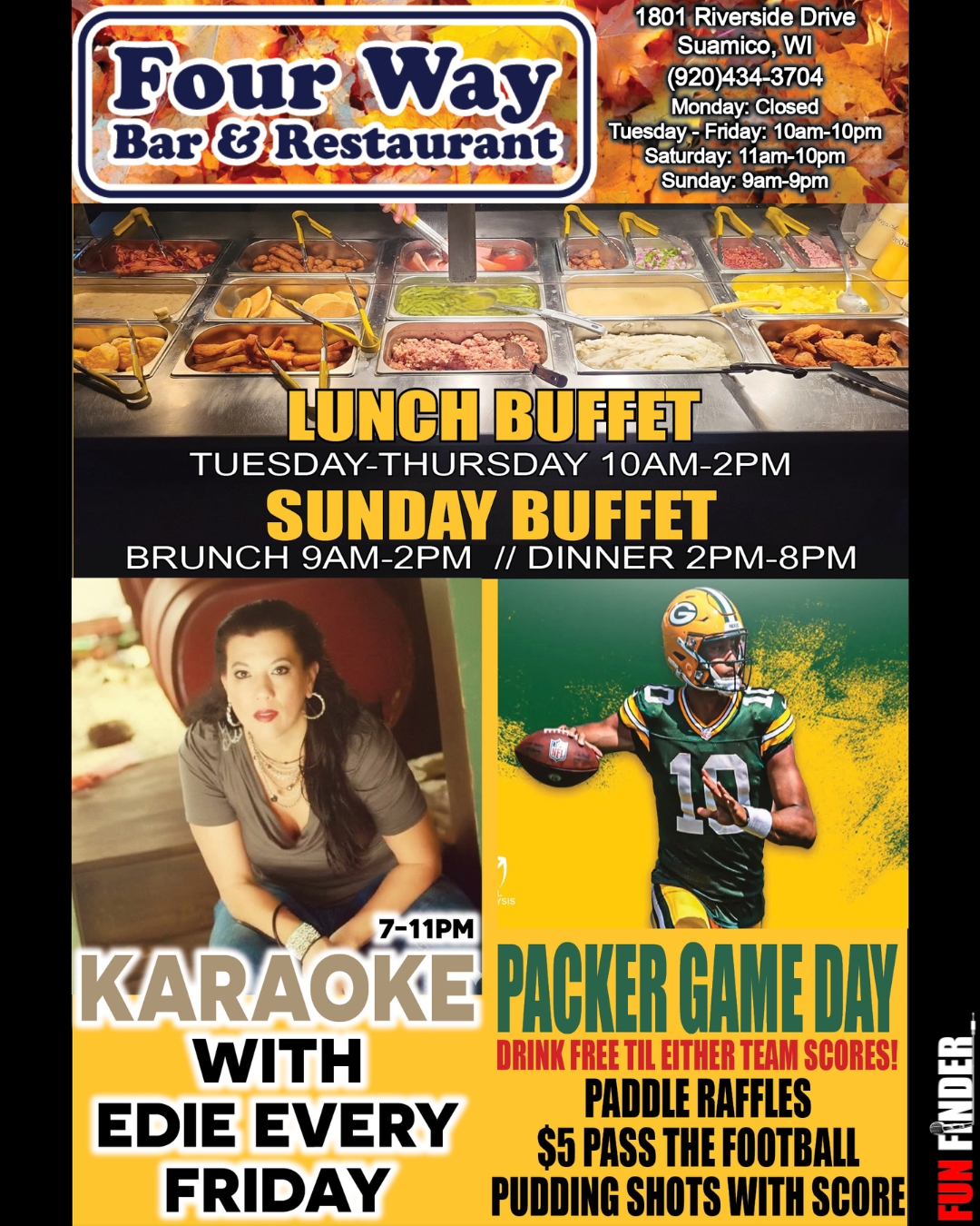 Conveniently located in Suamico, Wisconsin, Four Way Bar & Restaurant is easily accessible and attracts both locals and tourists. Whether you’re a resident looking for a new favorite spot or a visitor exploring the area, this establishment promises a memorable time.